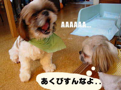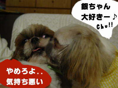 | 備考:2003年暮れに某ペットショップで「半額セール」として売られていた所を小松夫婦に引き取られる。当初みすぼらしい風貌だったが日に日に姿も態度も立派に。あんまり人間に遊びをせがむので相棒を飼うことになったのだが、その後普段は妙に大人な雰囲気になる。人当たりは良好だがいつもマイペース。2012年頃から食べる時と散歩以外は寝てばかり。年相応に老犬の貫禄を見せている。 |
